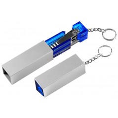 Set de Manicure con Llavero, en tubito rectangular plateado.