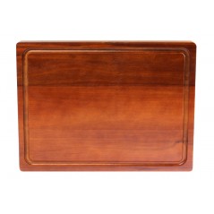 Gruesa tabla de madera sólida de ACACIA, para uso por ambos lados. Un lado con canaleta para cortar carnes y pescados, el otro lado con compartimento para poner verduras picadas, frutos secos o picoteo. Ideal para verduras y/o selección de quesos. Contiene ranuras laterales para tomar la tabla con mayor facilidad. Madera trabajada y acabada en máquina, de forma 100% regular, con superficies, laterales y cantos lisos y suaves, para una mayor higiene y comodidad al momento de cortar y servir alimentos. La Acacia, junto con la Teca, es considerada la mejor, más dura y más resistente madera para utilizar para cortes de alimentos - Densidad aprox. 770kg/m3. - Dureza 9.5 (test de Monnin).