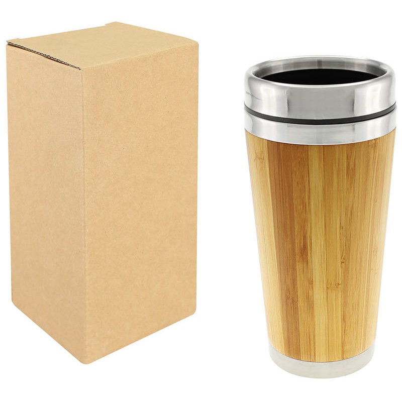 Mug de madera de Bamboo, interior de Acero Inoxidable, tapa con dosificador.